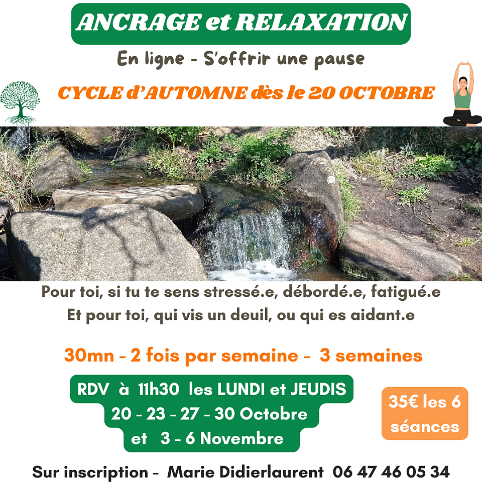 - Un temps de relaxation au début pour canaliser votre mental et accueillir vos ressentis